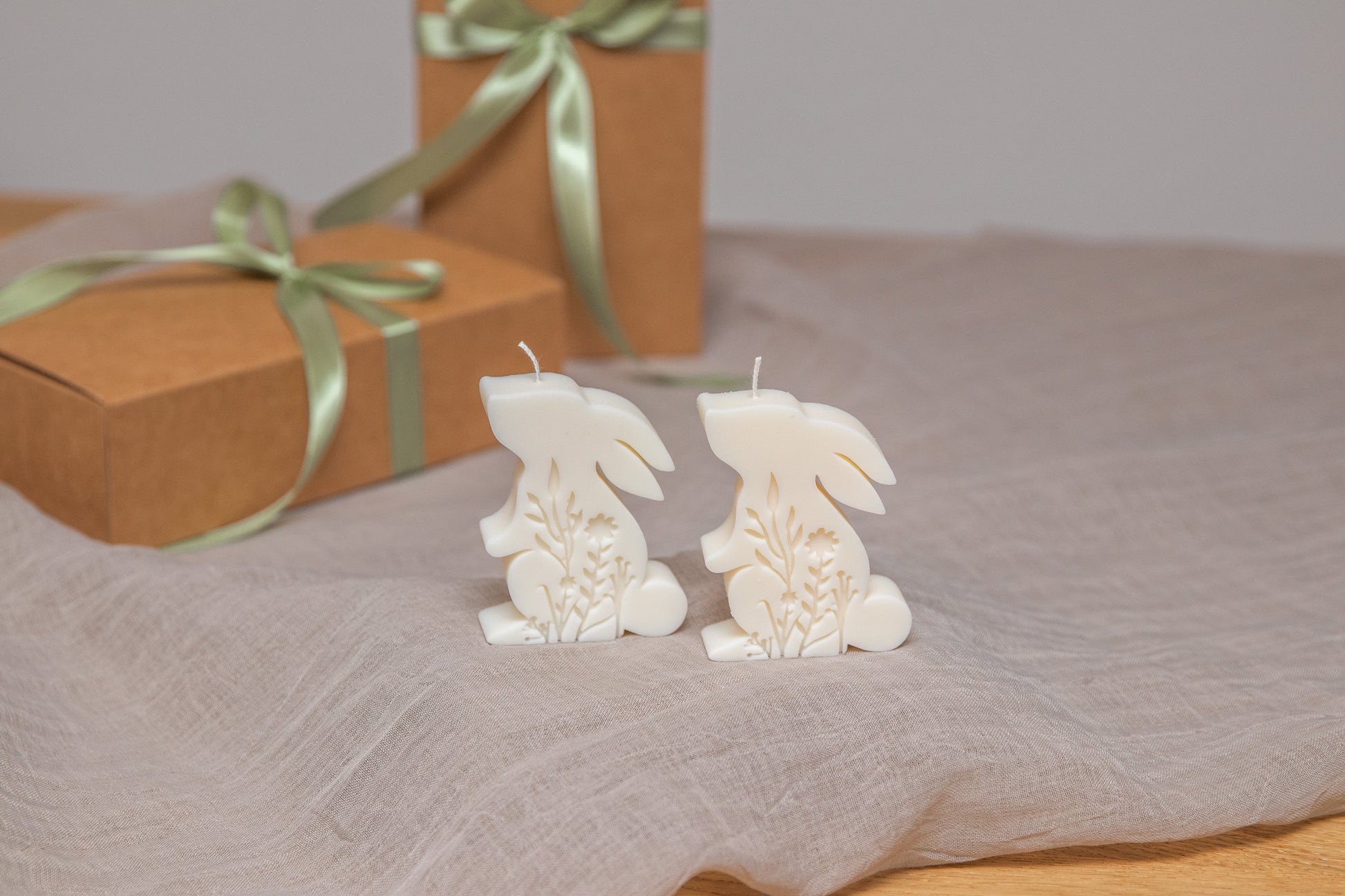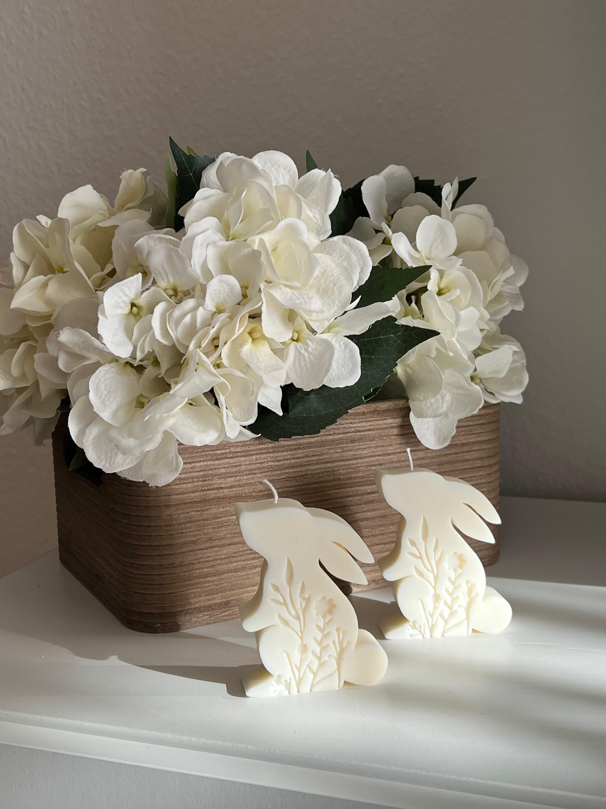 Niedliche Dekokerzen in Form von Osterhasen – perfekt für frühlingshafte Tischdekorationen oder als kleines Ostergeschenk.