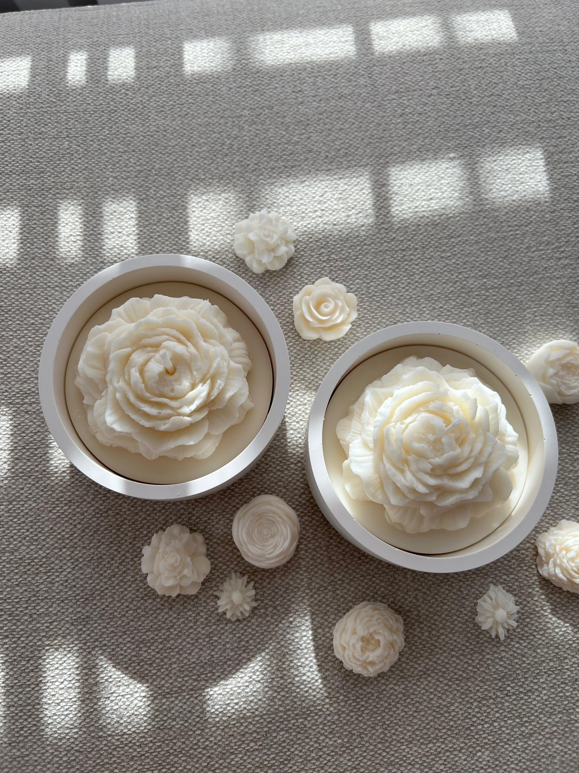 Die runde Schale aus edlem Gussmaterial trägt in ihrer Mitte eine kunstvoll geformte Rosenkerze – ein harmonisches Zusammenspiel von Form, Farbe und Wachs.Ideal als Tischdeko, Geschenk oder Blickfang im Wohnraum – ganz ohne anzuzünden, einfach zum Geniessen.